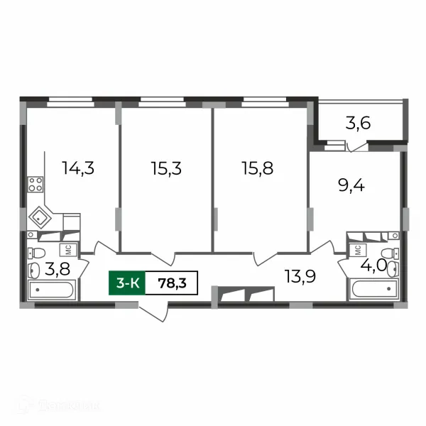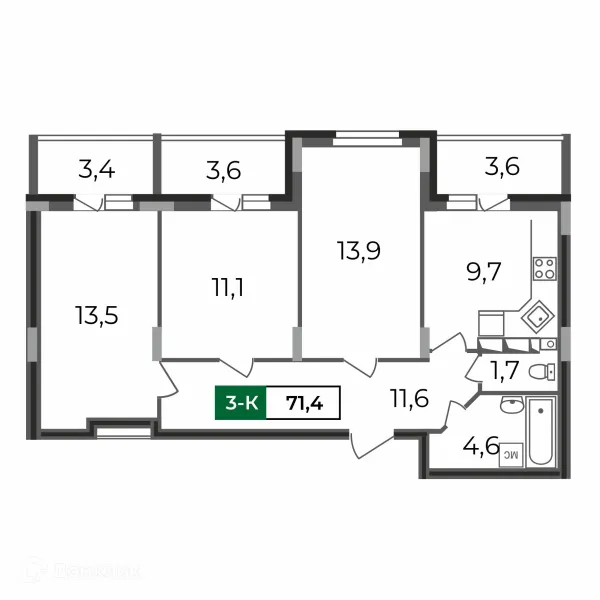 3 комн. квартира в Владимире в ипотеку от 57 156 руб/месяц