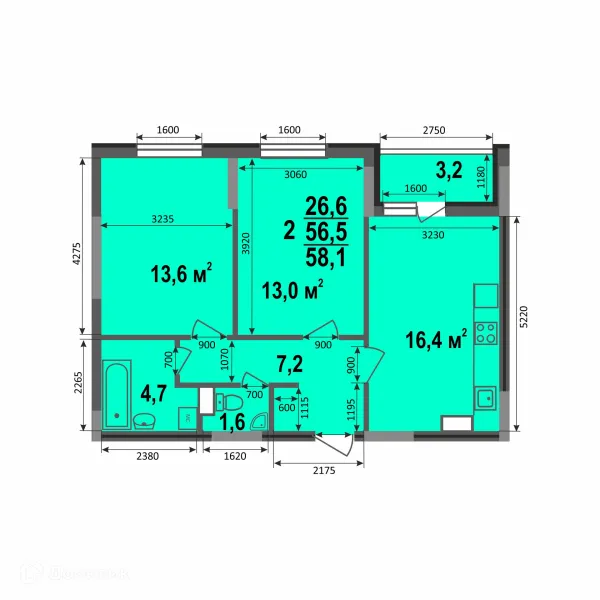 2 комн. квартира в Владимире в ипотеку от 43 377 руб/месяц