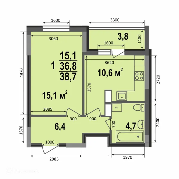 1 комн. квартира в Владимире в ипотеку от 26 421 руб/месяц