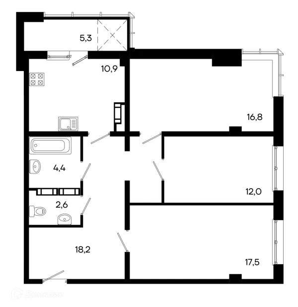 3 комн. квартира в Симферополе в ипотеку от 95 892 руб/месяц