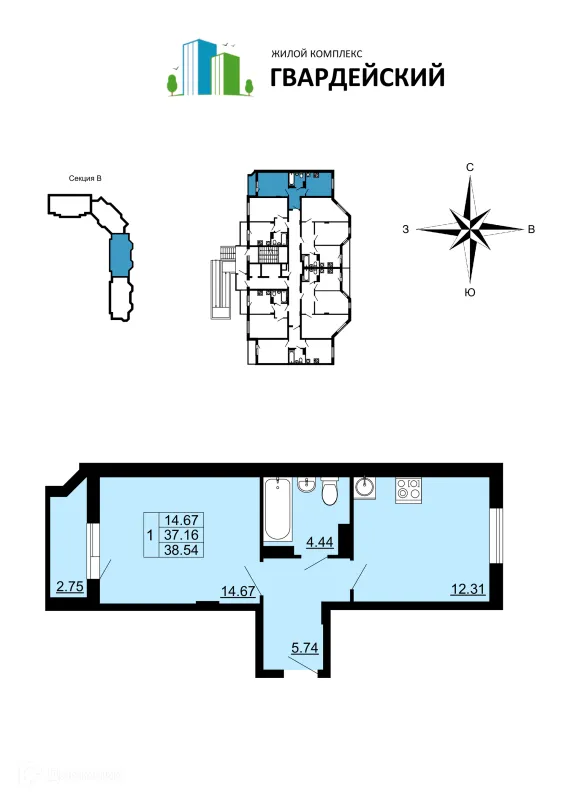 1 комн. квартира в Владимире в ипотеку от 28 804 руб/месяц