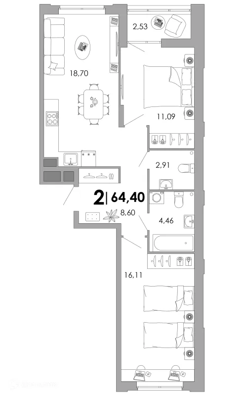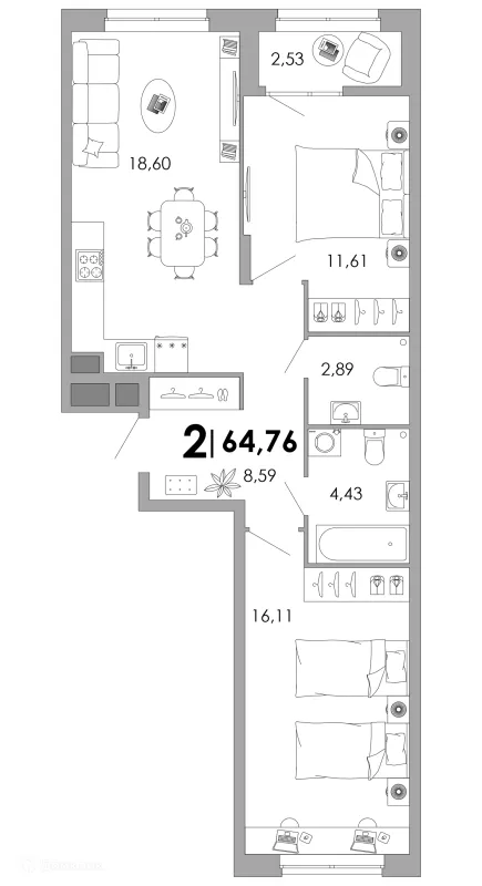2 комн. квартира в Владимире в ипотеку от 60 543 руб/месяц