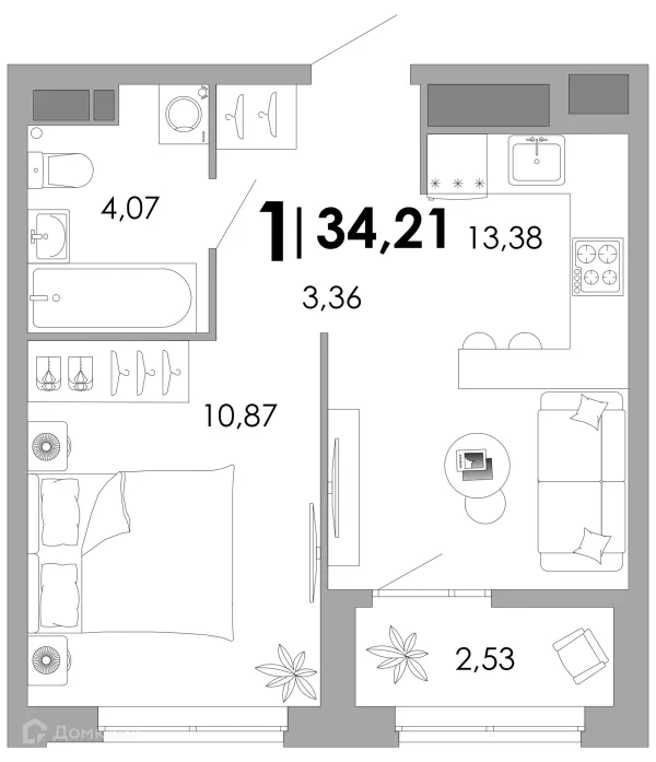 1 комн. квартира в Владимире в ипотеку от 34 715 руб/месяц