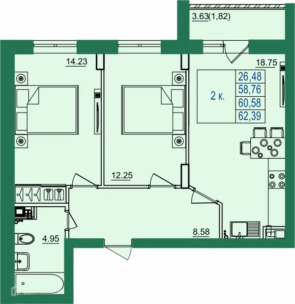 2 комн. квартира в Владимире в ипотеку от 44 096 руб/месяц