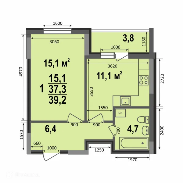 1 комн. квартира в Владимире в ипотеку от 27 911 руб/месяц