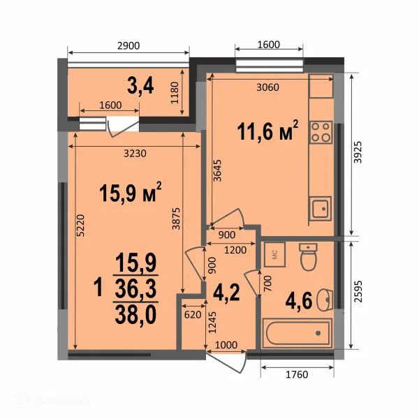 1 комн. квартира в Владимире в ипотеку от 29 051 руб/месяц