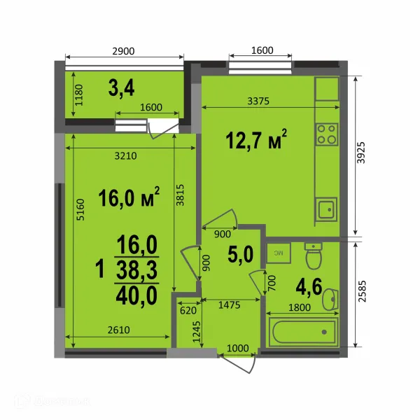 1 комн. квартира в Владимире в ипотеку от 28 555 руб/месяц