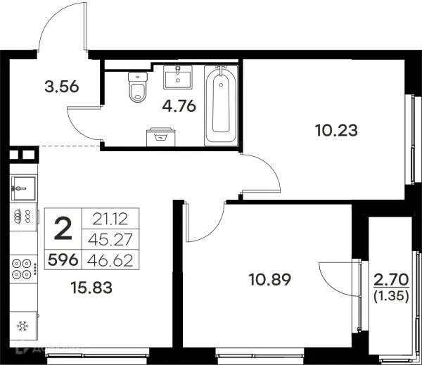 2 комн. квартира в Владимире в ипотеку от 46 014 руб/месяц