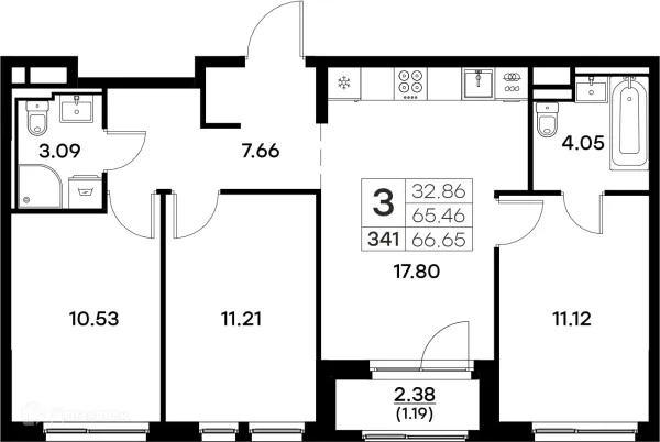 3 комн. квартира в Владимире в ипотеку от 58 400 руб/месяц