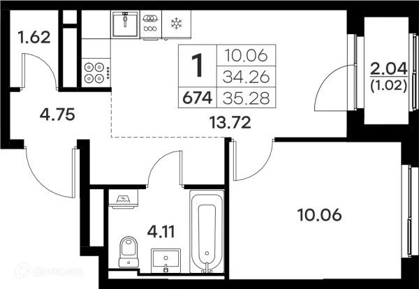 1 комн. квартира в Владимире в ипотеку от 34 564 руб/месяц