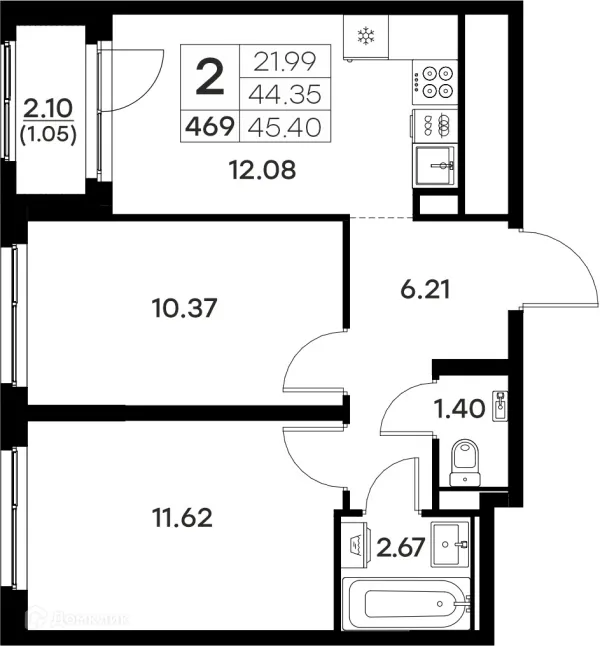 2 комн. квартира в Владимире в ипотеку от 43 566 руб/месяц