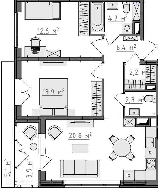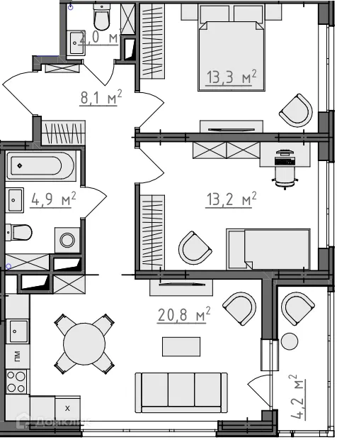 2 комн. квартира в Владимире в ипотеку от 41 495 руб/месяц