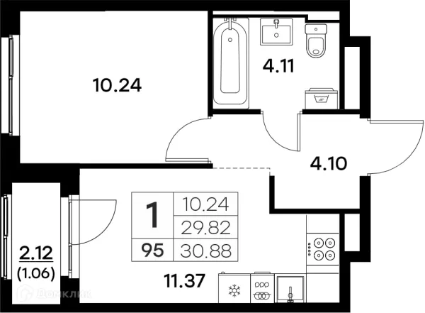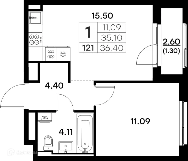 1 комн. квартира в Владимире в ипотеку от 37 301 руб/месяц