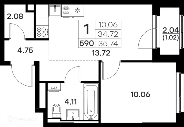 1 комн. квартира в Владимире в ипотеку от 32 476 руб/месяц