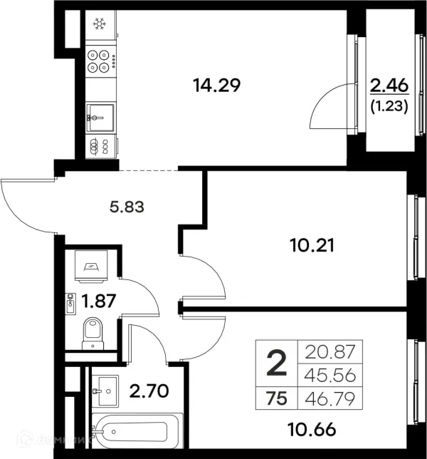 2 комн. квартира в Владимире в ипотеку от 45 745 руб/месяц