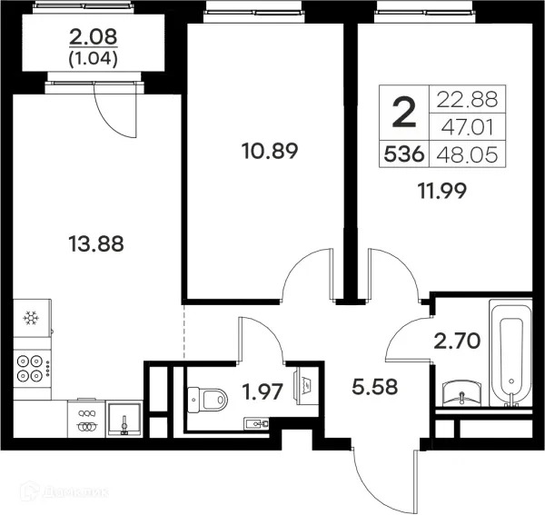 2 комн. квартира в Владимире в ипотеку от 45 812 руб/месяц