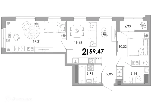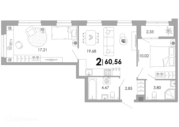 2 комн. квартира в Владимире в ипотеку от 60 674 руб/месяц