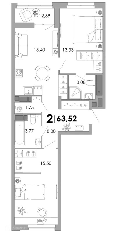 2 комн. квартира в Владимире в ипотеку от 63 237 руб/месяц