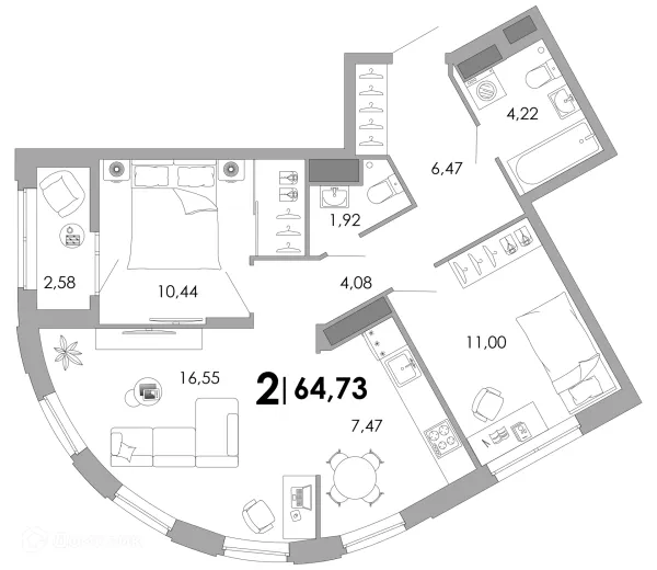 2 комн. квартира в Владимире в ипотеку от 64 299 руб/месяц