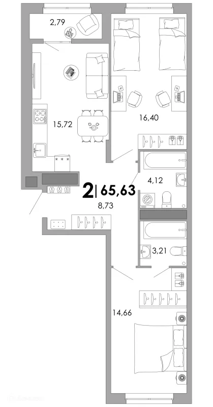 2 комн. квартира в Владимире в ипотеку от 65 939 руб/месяц