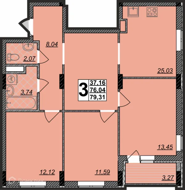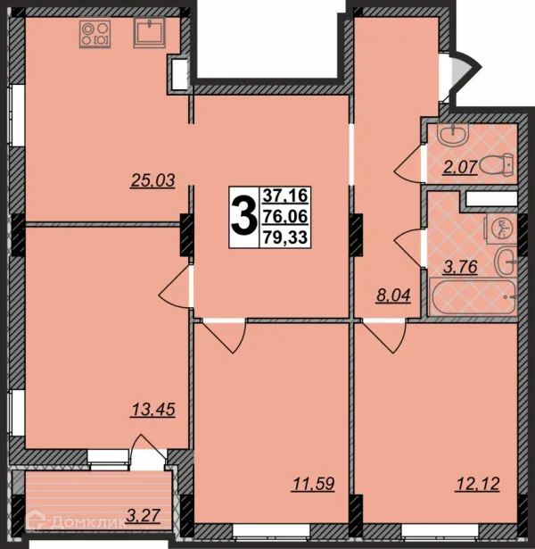 3 комн. квартира в Владимире в ипотеку от 76 735 руб/месяц