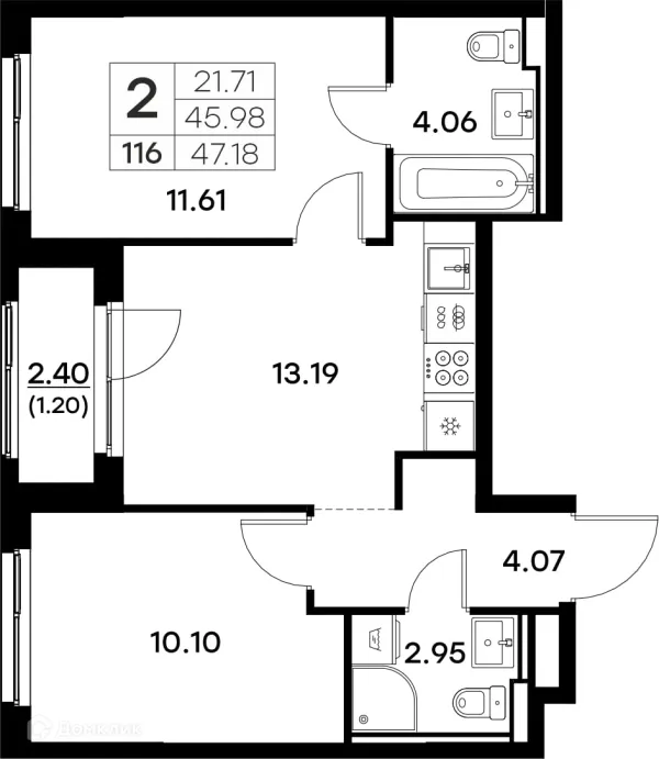 2 комн. квартира в Владимире в ипотеку от 45 078 руб/месяц