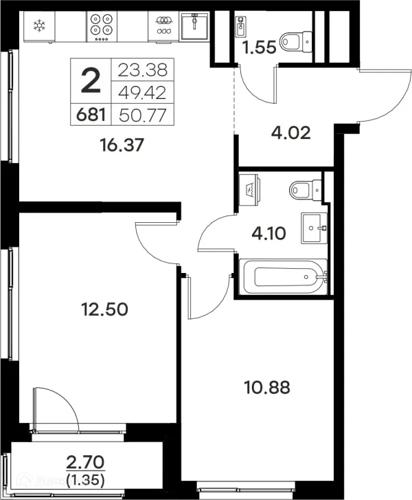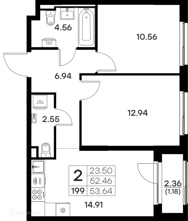 2 комн. квартира в Владимире в ипотеку от 55 015 руб/месяц