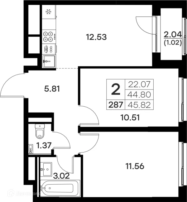 2 комн. квартира в Владимире в ипотеку от 45 870 руб/месяц