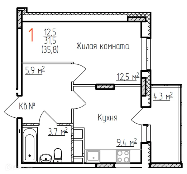 1 комн. квартира в Владимире в ипотеку от 30 935 руб/месяц